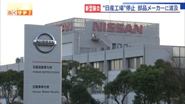 日産自動車九州(福岡県苅田町)は新型コロナウイルスの影響で中国製部品の一部が調達困難になったため、24日も生産ラインの稼働を停止する。これまで14日に完成車の全2ライン、17日に1ラインを停止するとしていた。また稼働する日の生産時間も短縮する。昼夜2直体制で通常は1直8時間だが、18~21日は1直7時間に短縮し、1日当たり2時間生産調整する。(映像提供=TVQ九州放送)