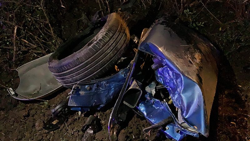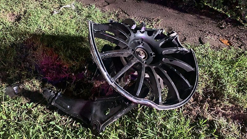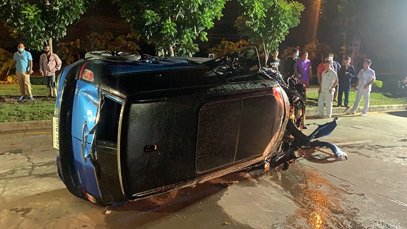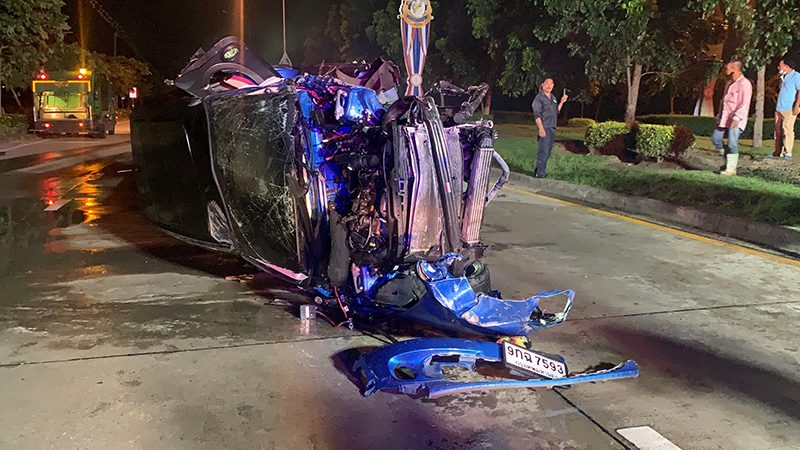 ที่เกิดเหตุใกล้สะพานข้ามคลองบางน้อย บริเวณกลางถนนพบรถยนต์ ยี่ห้อมินิคูเปอร์ S สีน้ำเงิน หมายเลขทะเบียน 9 กฉ 7593 กรุงเทพมหานคร อยู่ในสภาพพลิกคว่ำตะแคงขวา พังเสียหายทั้งคัน ยางล้อแม็กซ์หน้าซ้ายหลุดกระเด็นหายไป และมีกลุ่มควันสีขาวพวยพุ่งออกจากห้องเครื่องยนต์ เจ้าหน้าที่จึงใช้ถังเคมีดับเพลิงฉีดพ่นทันที นอกจากนี้ยังพบชิ้นส่วนรถหลุดกระจายเต็มพื้นถนน