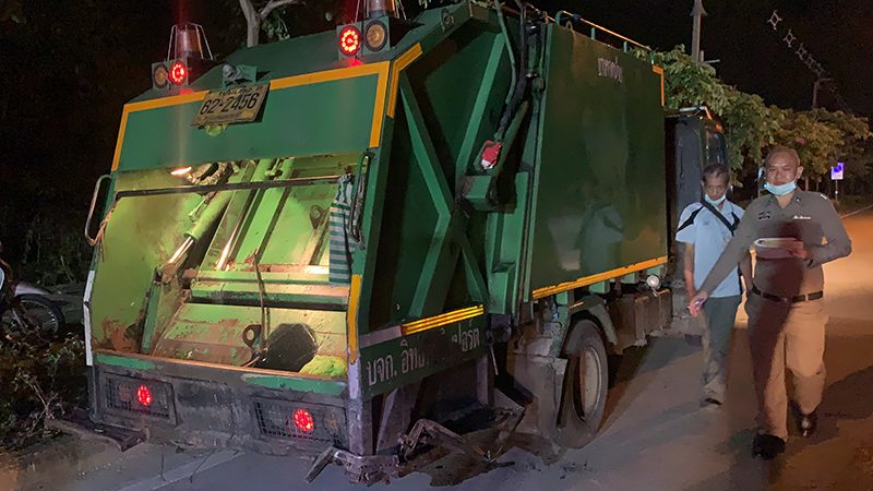 เมื่อเวลา 01.00 น. วันที่ 15 ก.ค. พ.ต.ท.ณรงค์ บุญช่วย สารวัตร(สอบสวน)สน.ศาลาแดง รับแจ้งอุบัติเหตุรถยนต์ชนท้ายรถเก็บขยะ บนถนนพุทธมณฑลสาย 3 แขวงและเขตทวีวัฒนา กทม.จึงรุดตรวจสอบพร้อมอาสาสมัครมูลนิธิป่อเต็กตึ๊ง