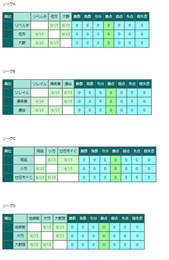 リーグ戦結果 8/15